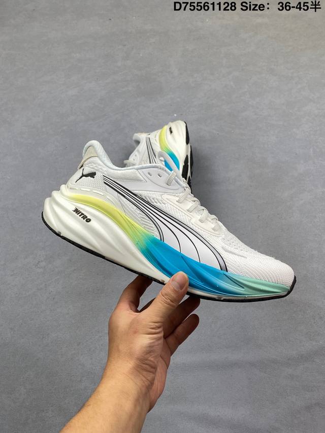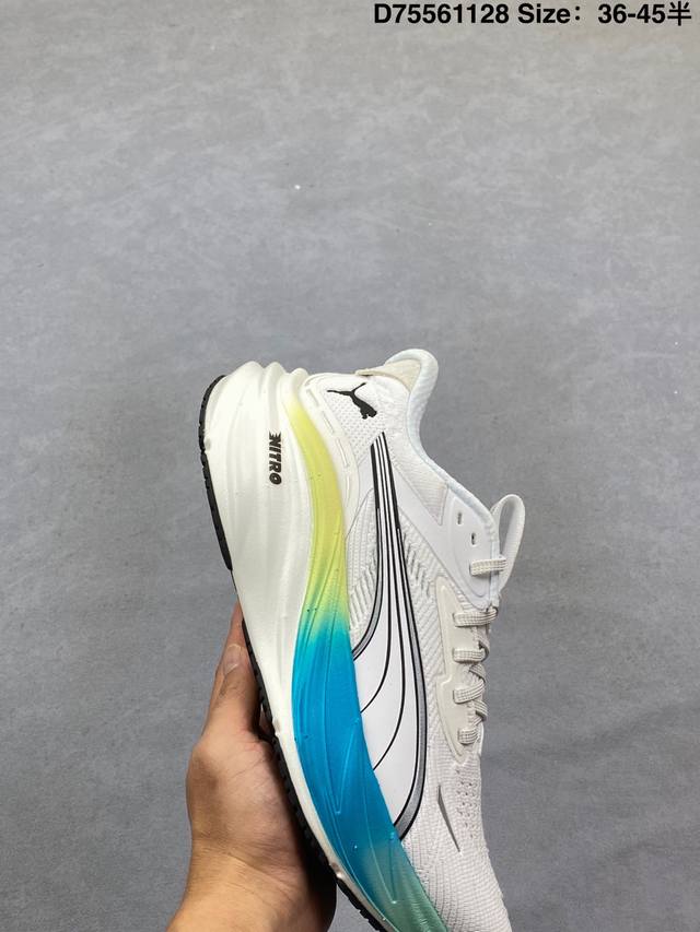 公司级puma Deviate Nitro 3 彪马 缓震训练跑鞋透气 舒适防滑耐磨 低帮 休闲跑步鞋 DDD 大底采用的是puma的大底pumagrip DDD 在任何条件下都能提供出色的控制力和抓地力 DDD 工程网眼的鞋面 舒适贴脚 DDD 鞋面上部使用大网眼设计增加透气性 DDD 半角撑鞋舌并使用小面积的泡棉 DDD 除了鞋舌上的泡棉之外 DDD 鞋跟和脚踝周围也有相当多的泡棉 DDD 这提高了鞋子的舒适性 锁定性和脚跟的安全性 DDD 货号:311046-07 DDD 尺码:36 37 37.5
