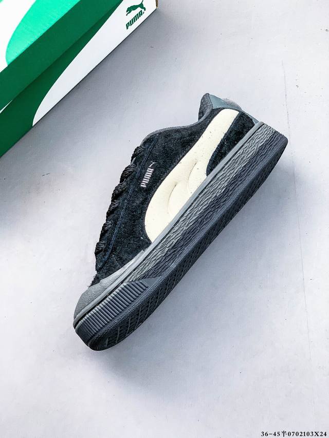 彪马Puma Suede Xl 全新休闲板鞋!鞋身通体采用细腻的麂皮材质,厚实柔软,质感出众;鞋侧保留Puma标志性跑道图案,侧面与后跟点缀金属色Puma Logo,兼具辨识度与细节感;加厚鞋垫、饱满鞋舌,搭配加宽扁形鞋带,使得穿着感更加贴合与舒适。