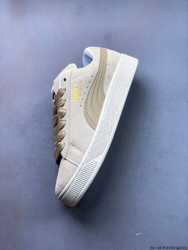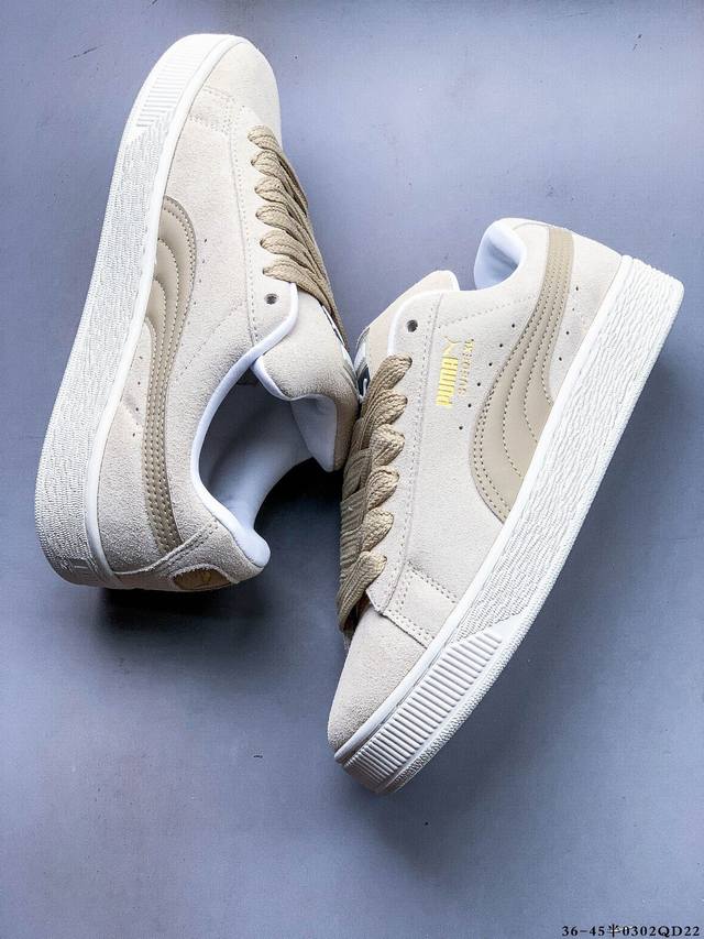 彪马Puma Suede Xl 全新休闲板鞋!鞋身通体采用细腻的麂皮材质,厚实柔软,质感出众;鞋侧保留Puma标志性跑道图案,侧面与后跟点缀金属色Puma Logo,兼具辨识度与细节感;加厚鞋垫、饱满鞋舌,搭配加宽扁形鞋带,使得穿着感更加贴合与舒适。