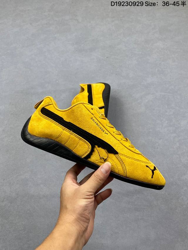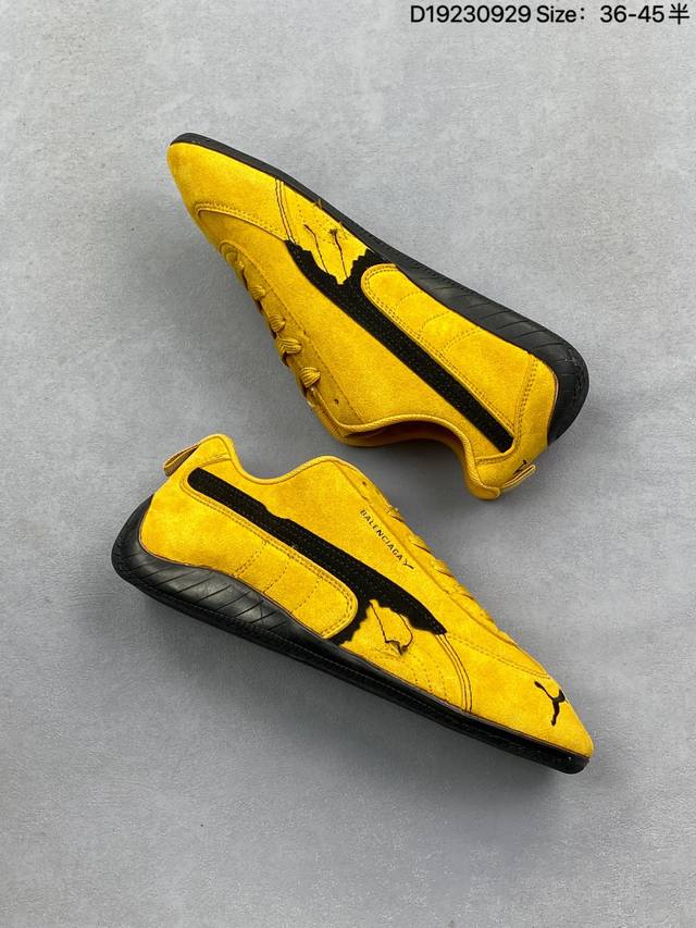 puma 彪马 X Balenciaga巴黎世家 Speedcat 系列 薄底鞋 牛皮绒面革 圆头做旧磨损 低帮 生活休闲鞋