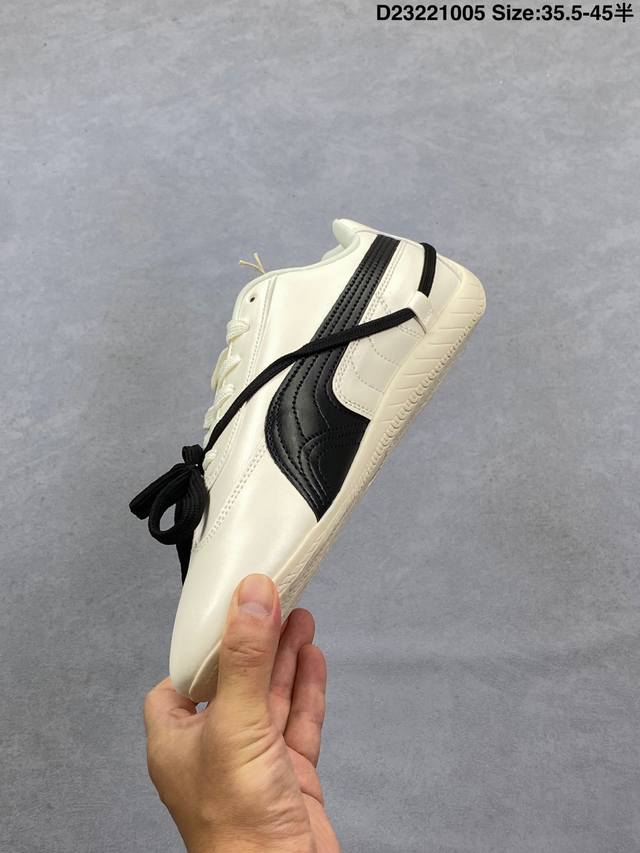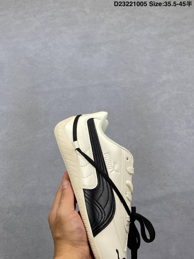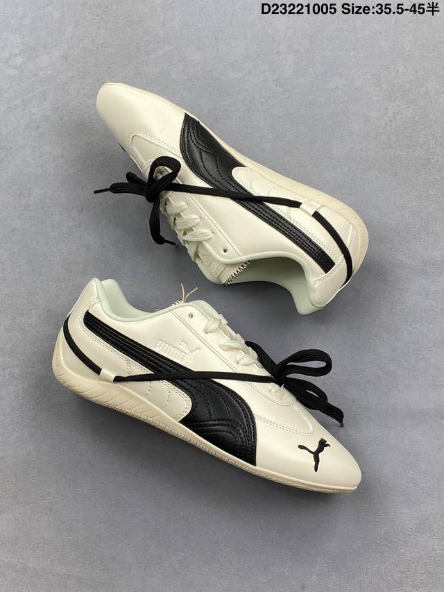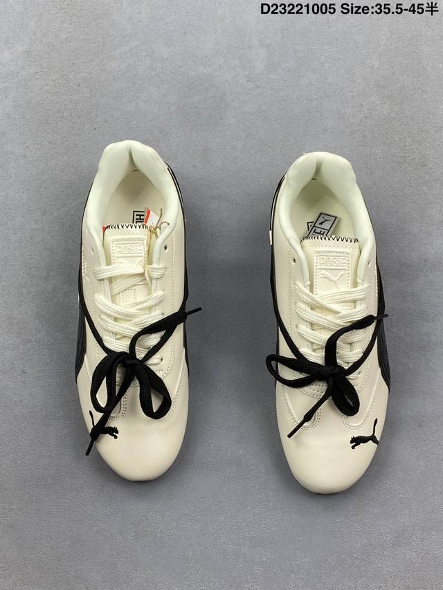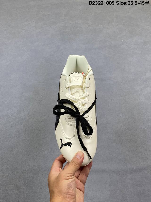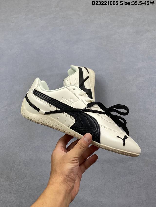 Rose X Puma Speedcat 朴彩英 X 彪马 低帮 黑白双鞋带 男女同款 情侣薄底赛车德训双鞋带舒适百搭低邦生活休闲鞋 Puma携手Rose正式发布首个联名系列;此次联名系列以Rose独到视角解码运动美学,将设计理念凝练为运动与时尚的双重叙事,特别推出专属 Rosie 标识,充分彰显联名身份;鞋身以经典黑白为主色调,简约又高级,另外细节上鞋舌与鞋垫处也印有Rose的Logo,这次采用的也是特殊鞋盒,Rose将她的个人美学注入Speedcat鞋型中; 白色Speedcat Balletz鞋款巧