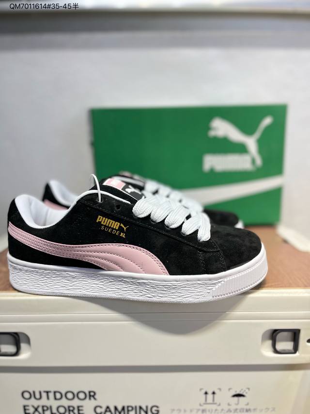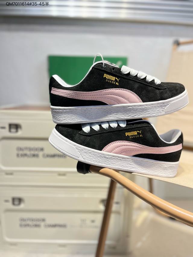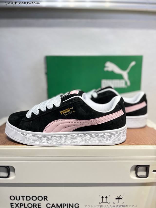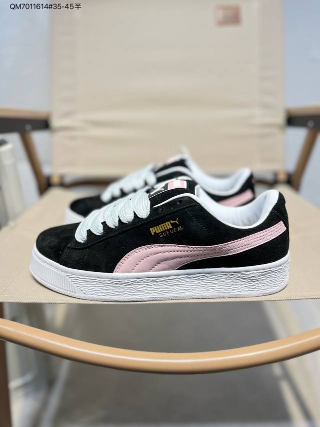 puma Suede Xl 彪马新款面包鞋男女同款复古休闲板鞋 鞋身通体采用细腻的麂皮材质 厚实柔软 质感出众 鞋侧保留Puma标志性跑道图案 侧面与后跟点缀金属色Puma Logo 兼具辨识度与细节感 加厚鞋垫、饱满鞋舌 搭配加宽扁形鞋带 使得穿着感更加贴合与舒适 值得一提的是 本季Suede Xl鞋款以黑色、红色及蓝色最为瞩目 经典黑的配色 在低调之余可轻松驾驭任何潮流风格造型 而高饱和度的配色 则是当之无愧的早春出街利器。货号: 395205 Qm7011614#35-45半