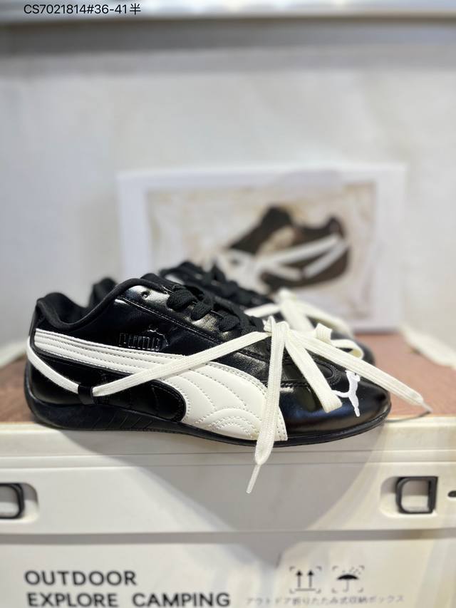 Rose X Puma彪马 Speedcat 系列 联名款 赛车 德训双鞋带 绑带休闲运动低帮板鞋 以趣味十足又前卫复古的设计引领潮流 将赛道精神融入街头时尚 开启前卫竞速之旅 主打前卫复古风 Roma鞋款的鞋侧以复古的流线造型 缀以宝马经典Logo 巧妙吸睛 而Speedcat鞋款以亮眼三色条纹元素缀以舒适鞋面 赋予了独特的个性美学 演绎赛车的无尽能量404391 Cs7021814#36-41半