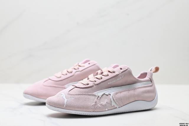 公司级Puma 彪马 X Balenciaga巴黎世家 Speedcat 系列 薄底鞋 牛皮绒面革 圆头做旧磨损 低帮 生活休闲鞋
