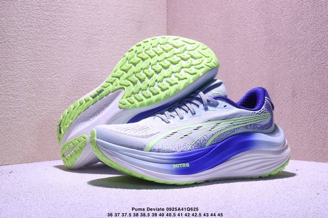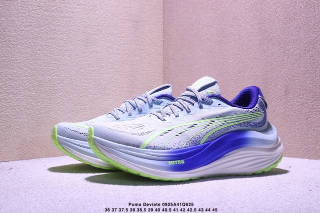 puma 彪马 男女鞋真标半码制,原楦原纸版开发版型,采用人体工程学网织结构鞋面材质,中底采用双层式 Nitro 氮气科技中底,外置超轻耐磨底片彪马puma Deviate Nitro Elite Mag Max 彪破精英顶缓系列低帮氮气超轻量竞速休闲运动慢跑鞋 312491