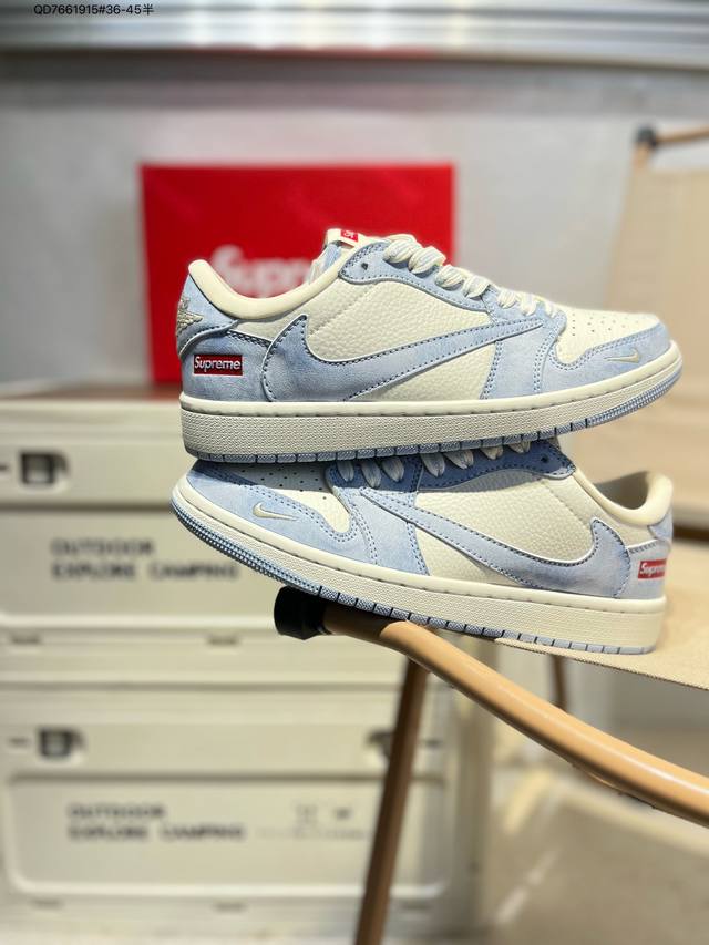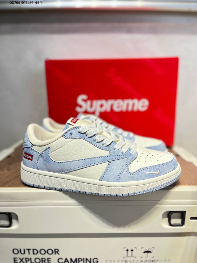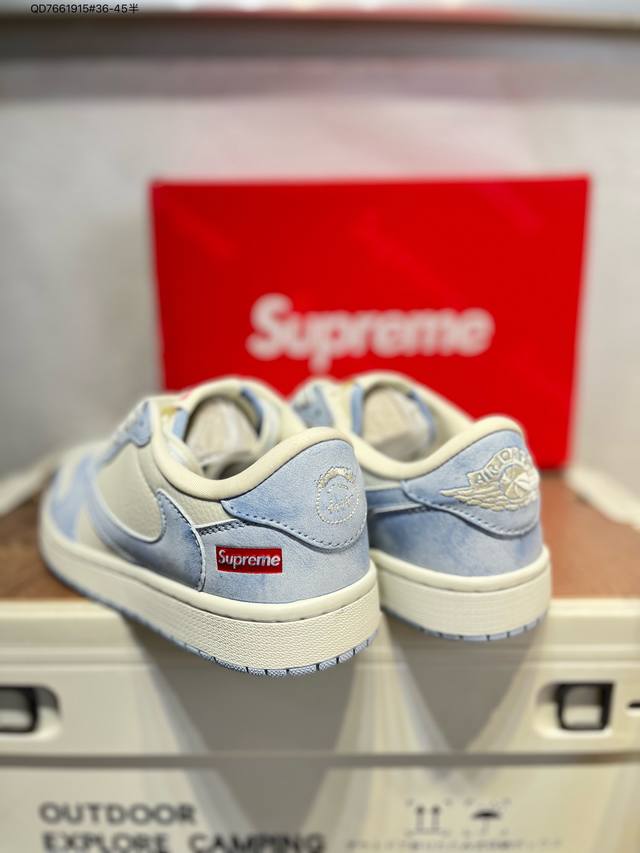 180 定制鞋盒 纯原大厂# Supreme X 乔丹Air Jordan 1 Low Aj1低帮系列篮球鞋 官方同步配色 原装级产物 #拒绝公底 立体鞋型 细