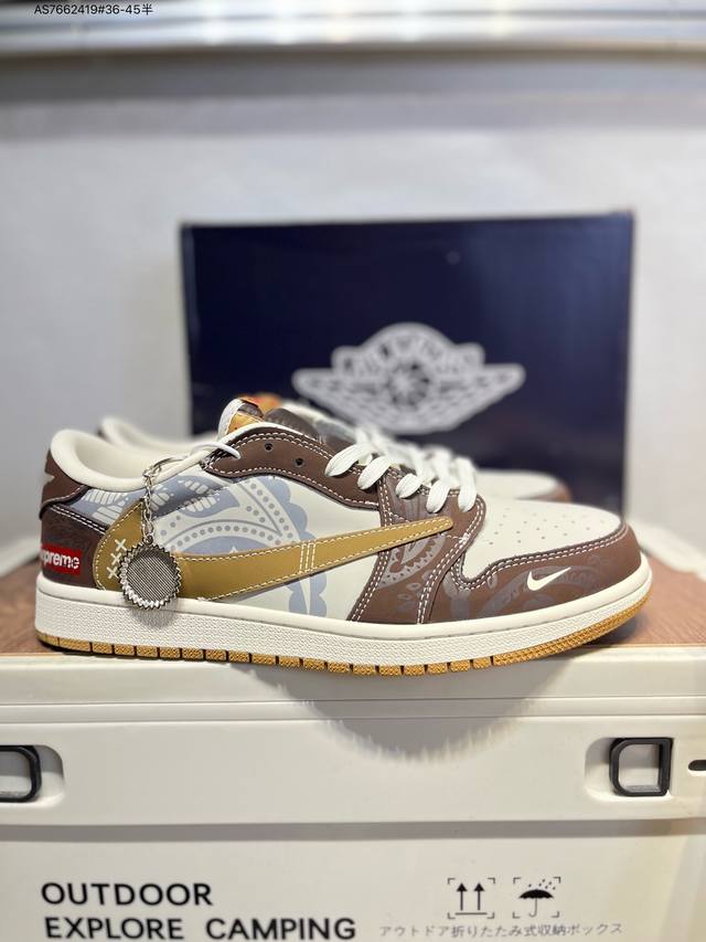 180 定制鞋盒 纯原大厂# Supreme X 乔丹Air Jordan 1 Low Aj1低帮系列篮球鞋 官方同步配色 原装级产物 #拒绝公底 立体鞋型 细