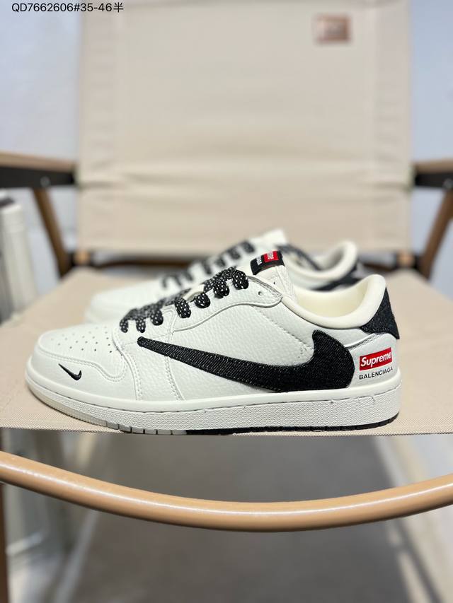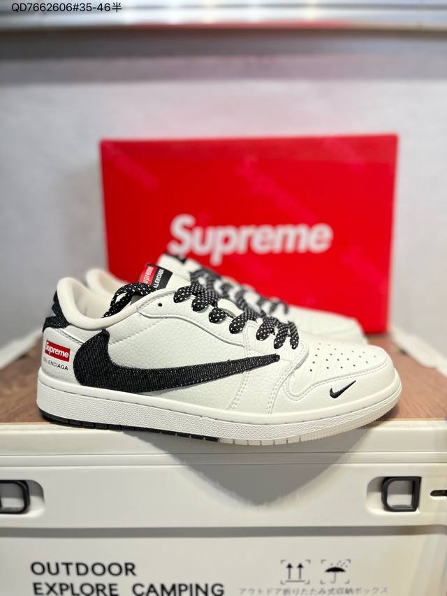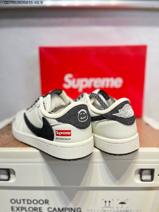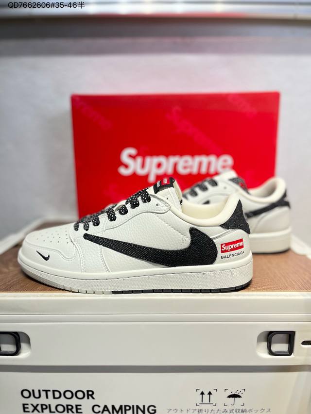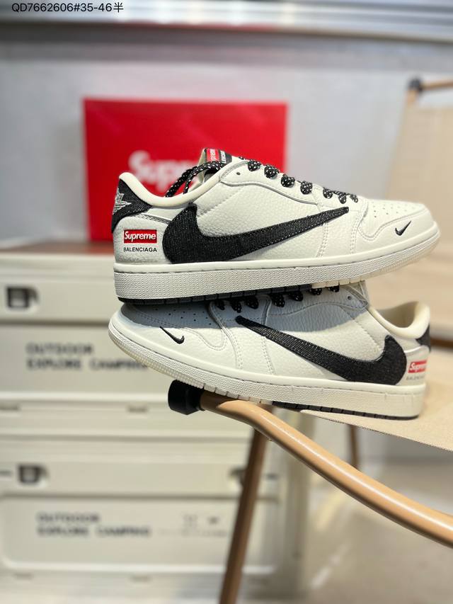 / 定制鞋盒 纯原大厂# Supreme X乔丹Air Jordan 1 Low Aj1低帮系列篮球鞋 官方同步配色 原装级产物 #拒绝公底 立体鞋型 细节完美Jh