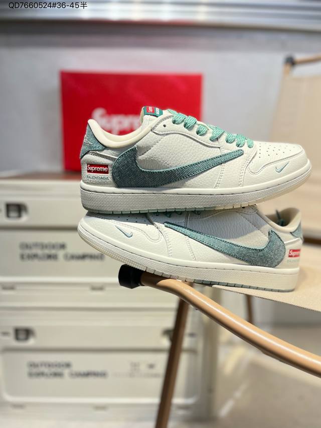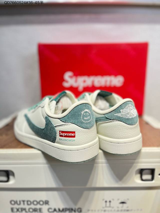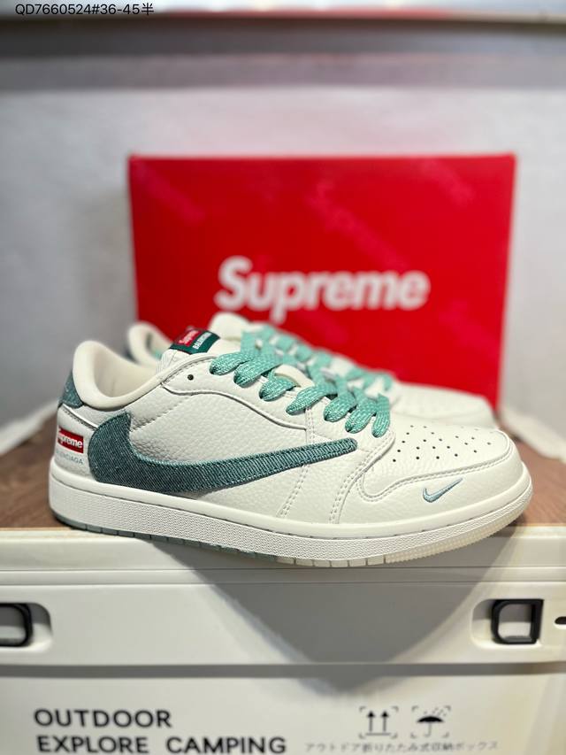 公司级头层皮Supreme X 乔丹Air Jordan 1 Low Aj1低帮系列篮球鞋 官方同步配色 原装级产物 #拒绝公底 立体鞋型 细节完美 高清洁度X