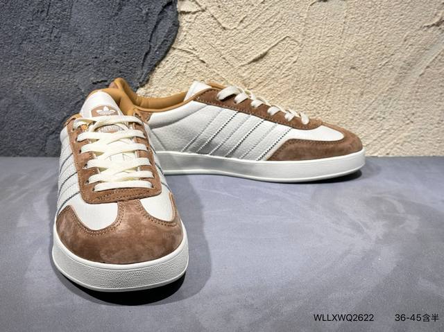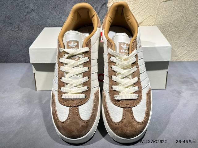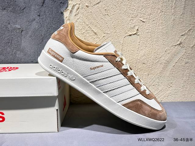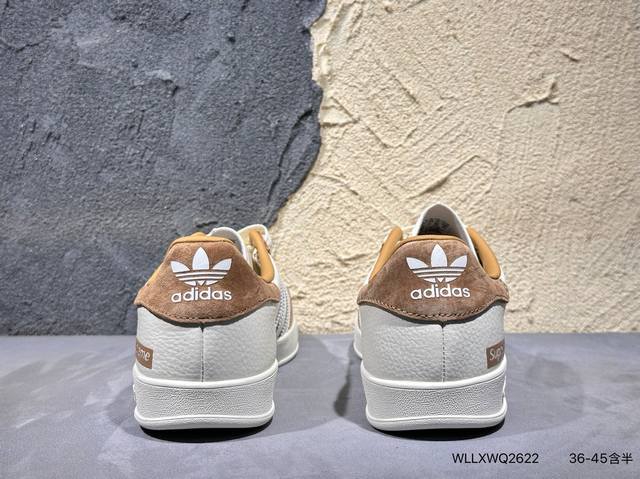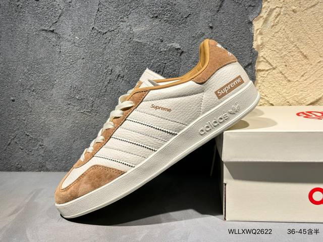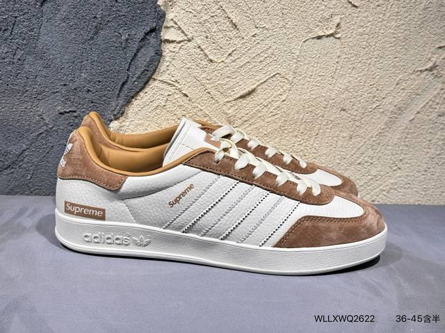 ad Gazelle Indoor Trainers Supreme联名---奶白棕 原厂定制长毛翻毛皮组合环保纤维革鞋面材质