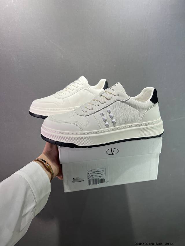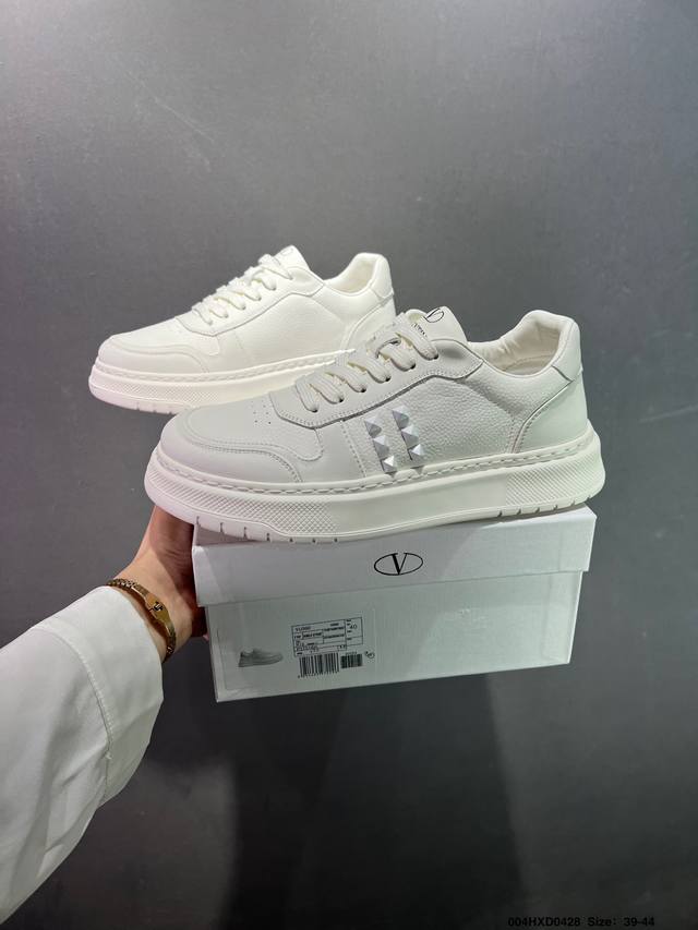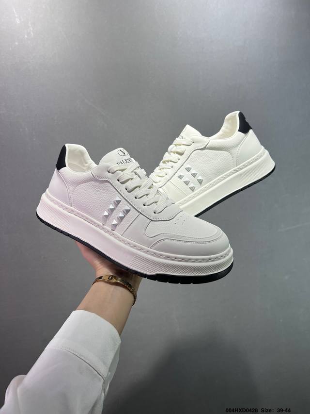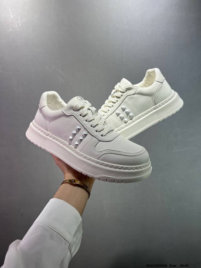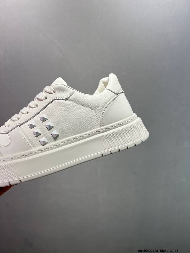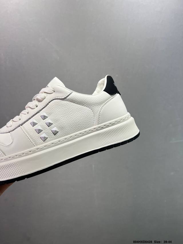 公司级Valentino 华伦天奴 Rockstud Untitled 厚底休闲铆钉小白鞋 明星同款 软羊皮低帮运动板鞋 经典百搭款绗缝格纹打造瞩目朋克风格 考究皮质构塑和简洁轮廓 流畅的线条奠定酷感基调 装饰质感橡胶效果 侧面铆钉装饰 穿出了不一样的随性和时髦 阿那亚大秀可谓是刷爆了时尚圈 鞋面全油边 面料:定制牛皮+独家开模橡胶发泡大底 轻便防滑耐磨 脚感舒适 款式耐看做工精细 全套包装