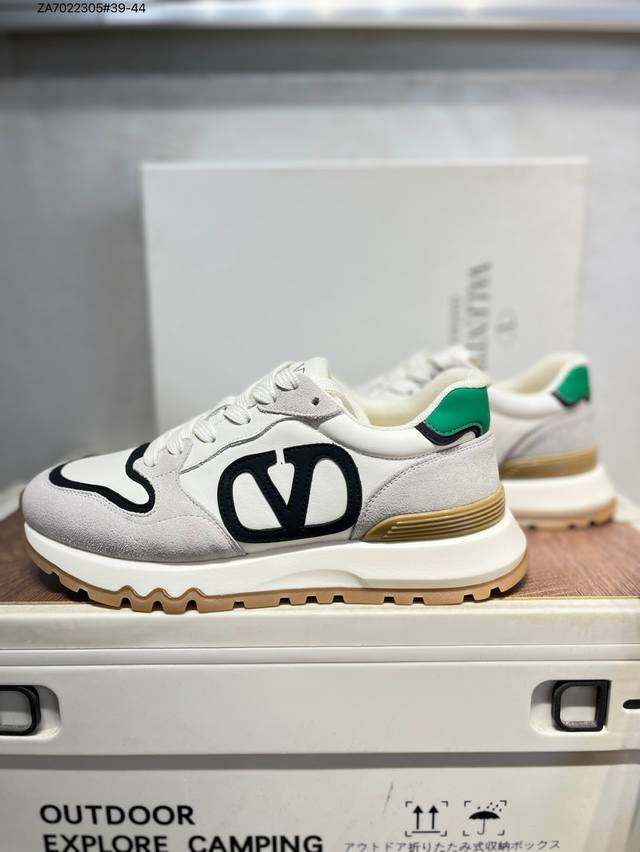原楦数据开发版型#采用软质粒面头层牛皮鞋面材质#内嵌灌注式Eva缓震鞋垫#外置增高轻质Md发泡橡胶鞋底意大利高奢时装品牌-华伦天奴 Valentino Calfskin Open Low Sneakers 系列低帮厚底百搭绑带休闲运动鞋Ry2S0830Blubl626H Za7022305#39-44