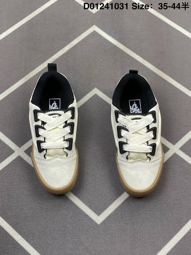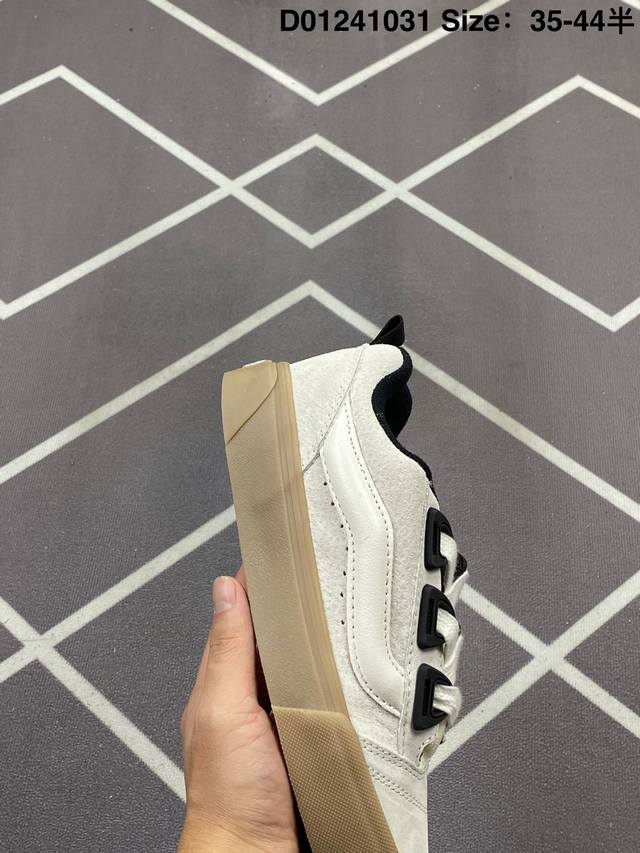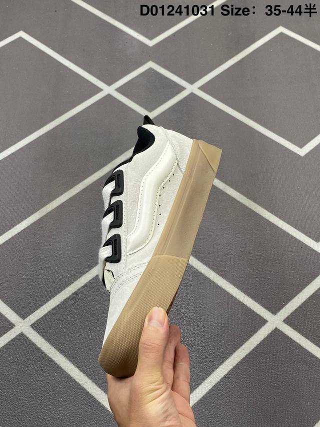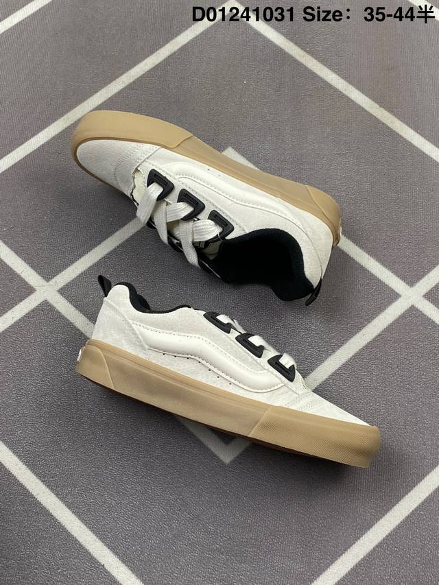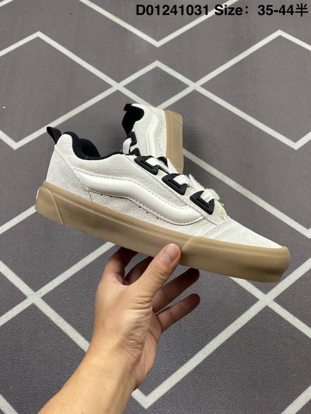 万斯 Vans Knu-Skool Vr3 Lx 面包鞋帆布鞋面。坎普尔 茱利安系列低帮复古硫化休闲运动板鞋“肥胖版大Logo”要说整个年最为热门的鞋型之一, 面包鞋 绝对值得一提,几乎每个品牌都推出了专属于自己的 面包鞋 。近期,Vans带回了难得一见的Knuskool鞋型也是Imranpotato的联名蓝本,并推出了四款全新配色。 第一款配色选择了十分经典的黑白造型打造,更为肥大厚重的鞋身廓形,也让整体视觉效果更加符合当下潮流。鞋身以帆布包裹,保证了质感的优秀,再搭配上白色的中底,整体造型Og气息非常