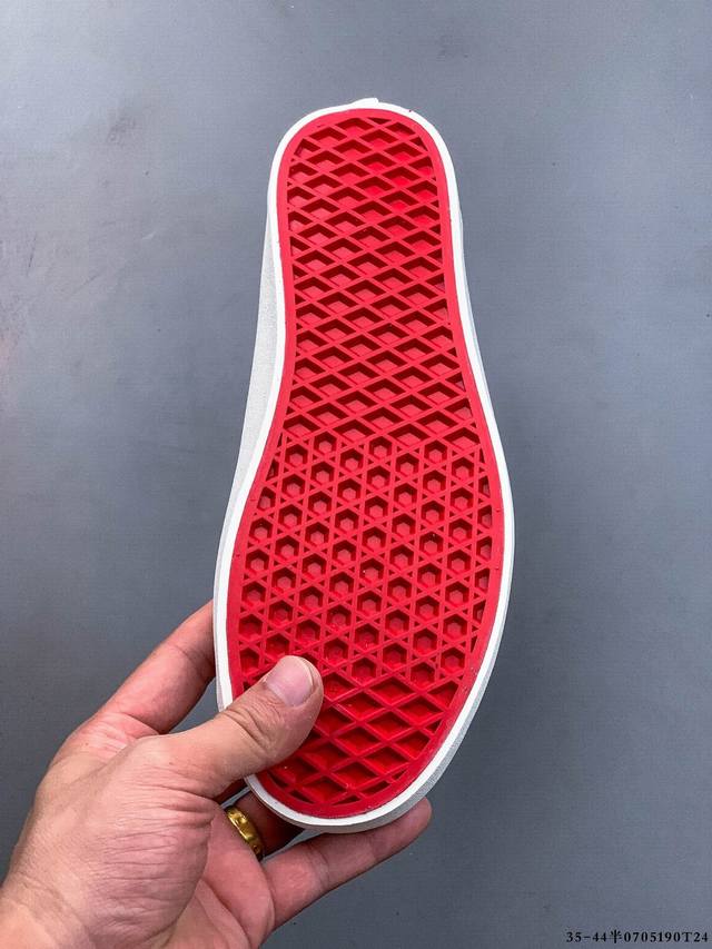 该支线继承了Vault Og与安纳海姆复古的气质。鞋身以高档麂皮打造,小巧的T字鞋头拼接设计。搭配梭织唛“Off The Wall”鞋舌标也让它显得与众不同 Flying-V 字侧边条 使经典的复古风格让人眼前一亮。