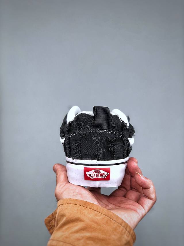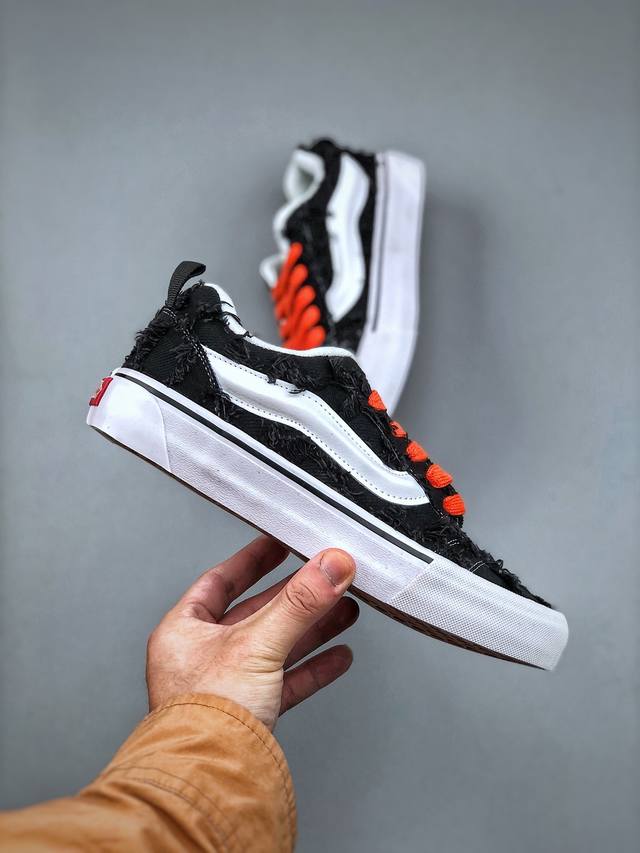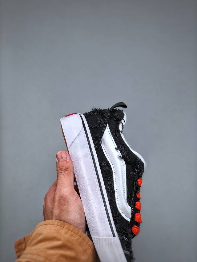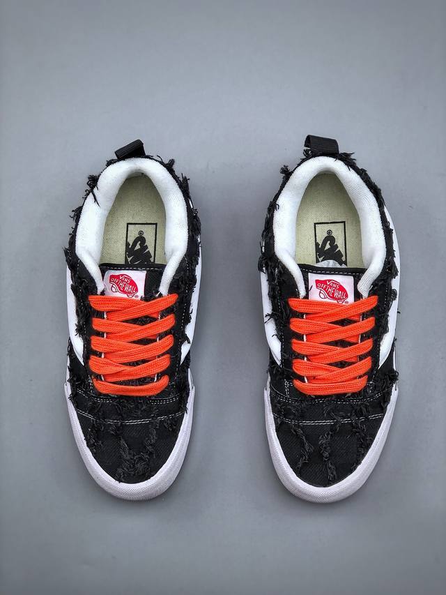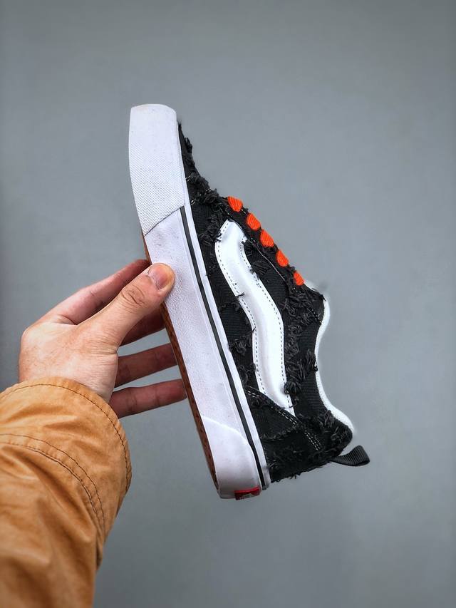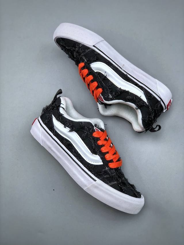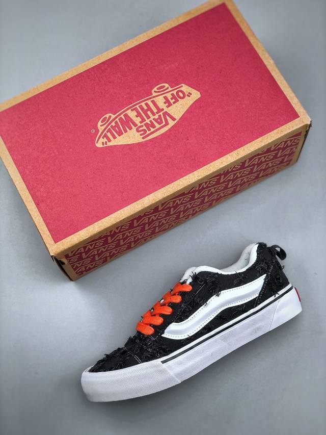 新款Vans Knu Skool 耐磨透气低帮板鞋男女同款款 黑白流苏长毛