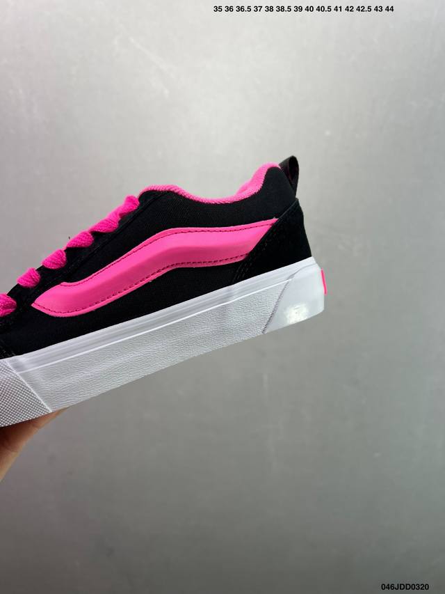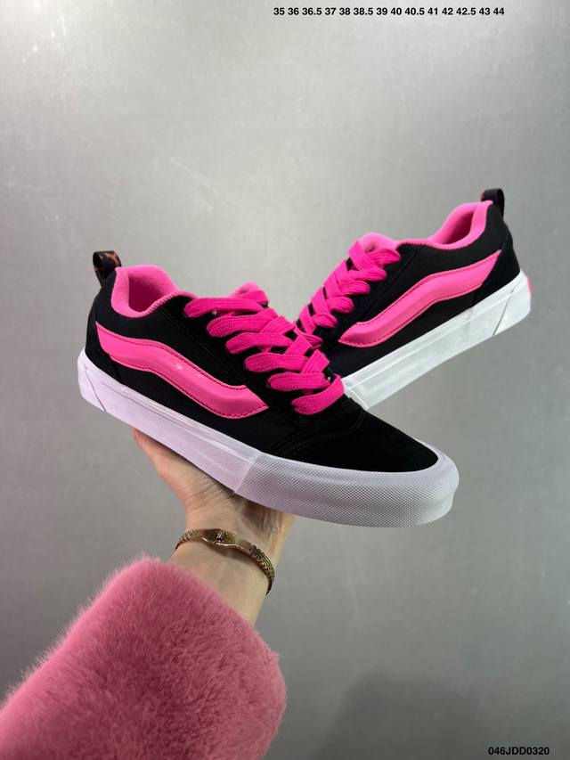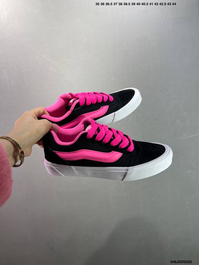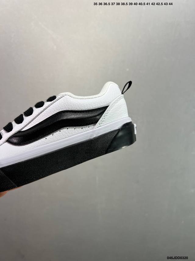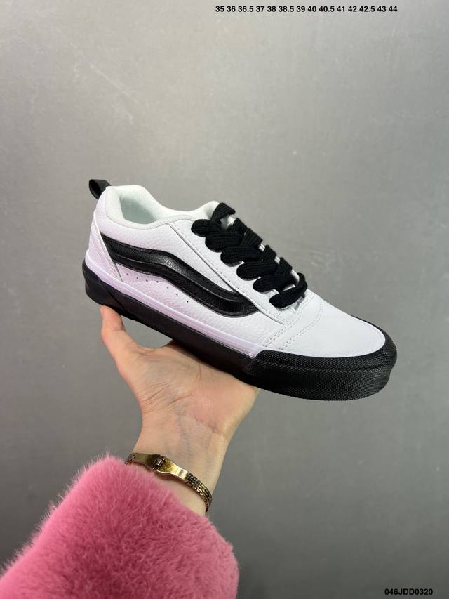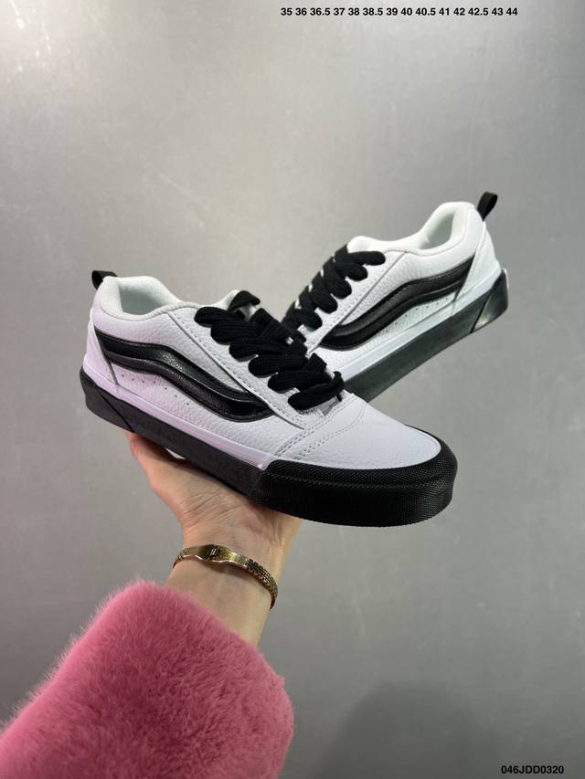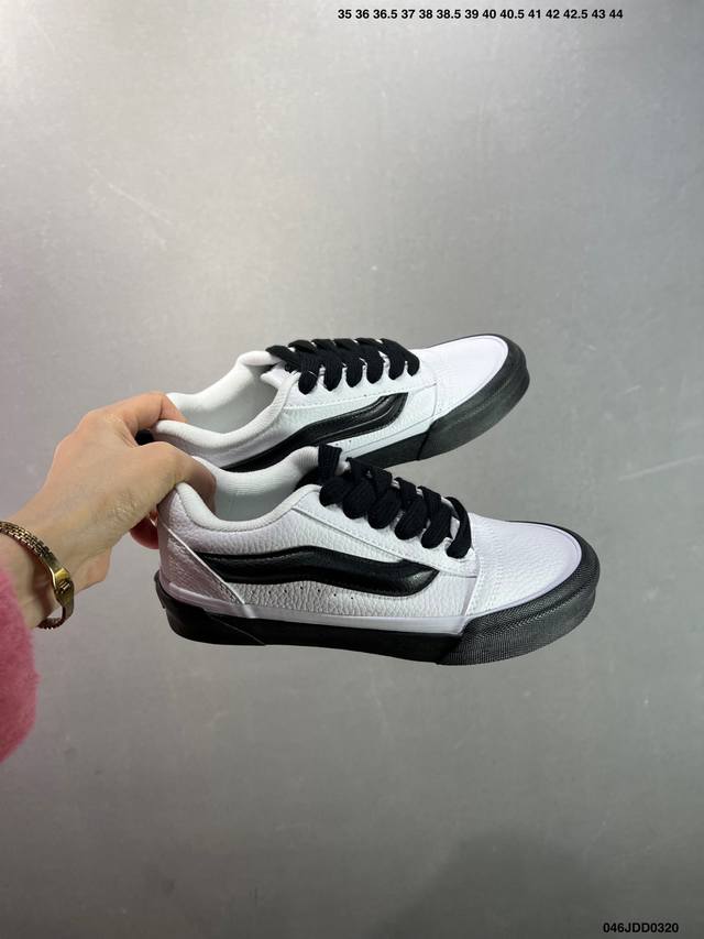 vans联名超火的土豆鞋,复古经典,鞋头放大、包边上移加厚、鞋舌加厚。Vans Classics 经典支线土豆鞋 Knu Skool 是完美的平替版,是大众争相追捧的 “面包鞋”