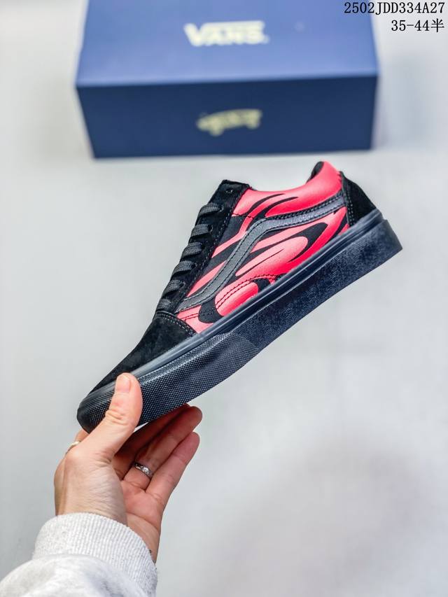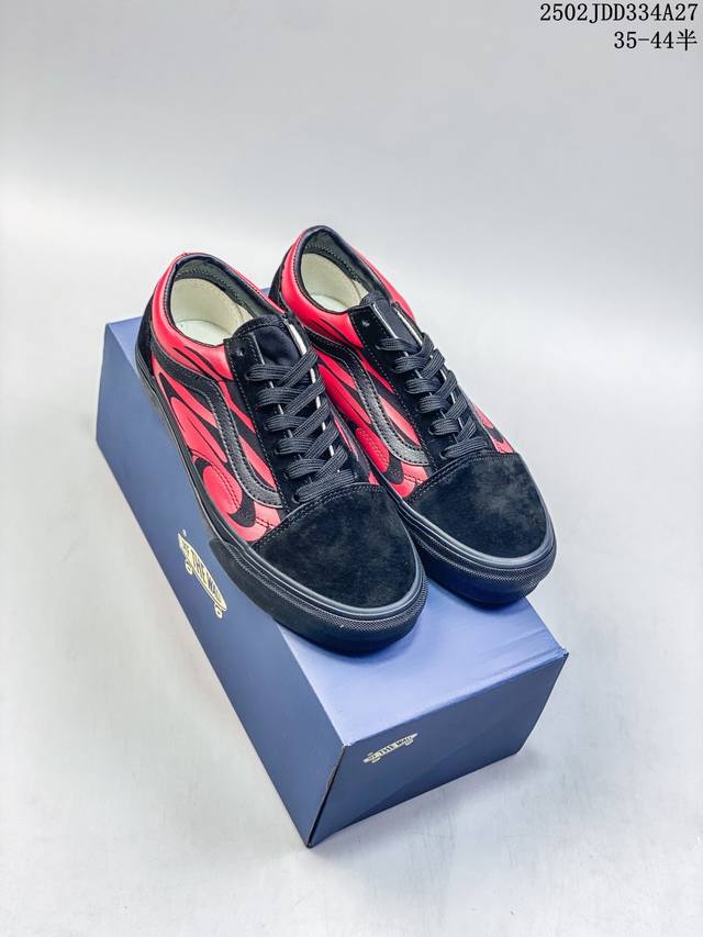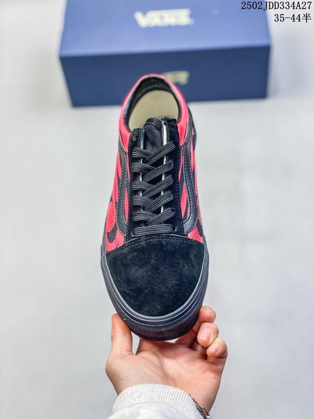 Vans Old Skool 舒适百搭 防滑减震 低帮 板鞋 男女同款 黑红印刷