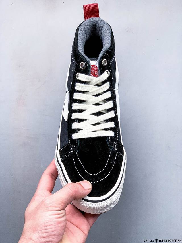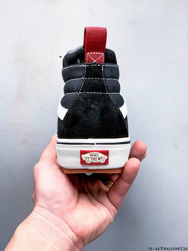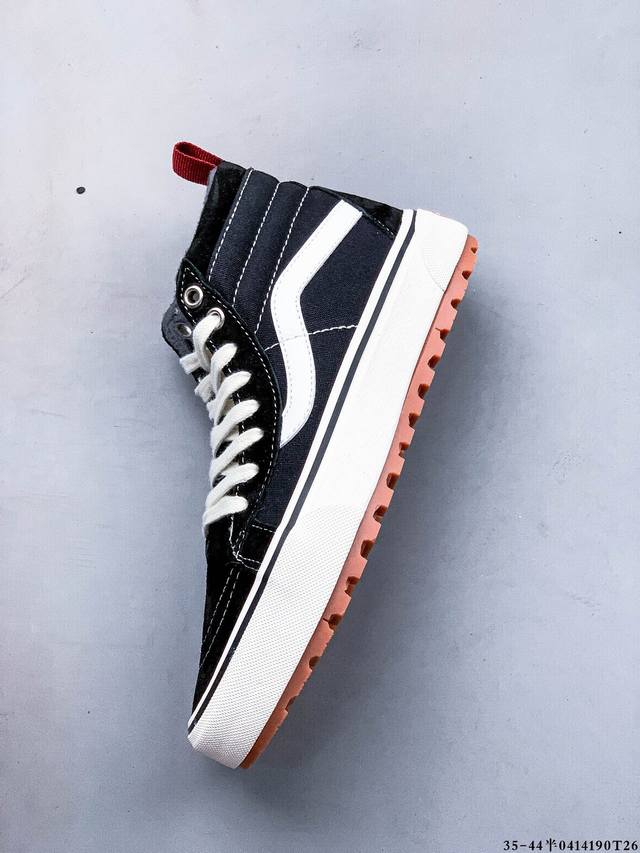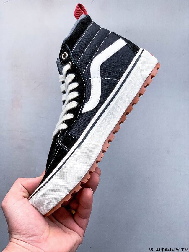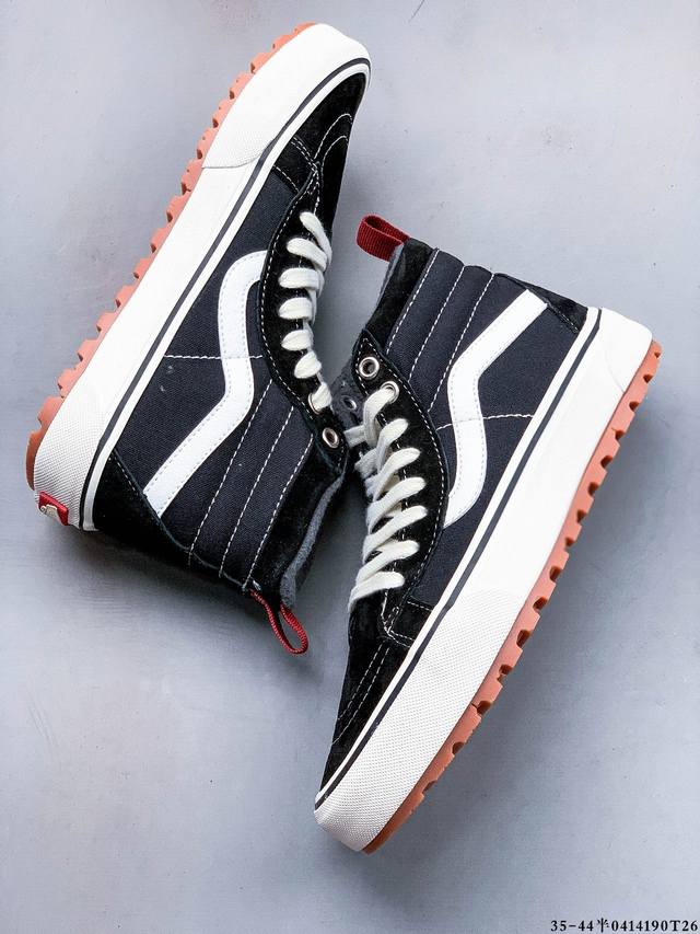 Vans Sk8 鞋身采用全猪八皮材质,经典黑白色为主打色,鞋后跟 Vans Logo 与 potato 字样巧妙融合,搭配最新的登山大底,从而成就了更经典的“登山面包鞋”!