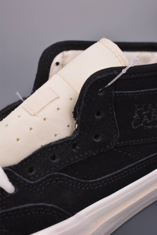 Jjjjound X Otw By Vans Half Cab 最新联名 美式复古休闲滑板鞋 纯黑麂皮加上白色鞋舌点缀 配以白色大底和鞋舌相配 货号:Vn000